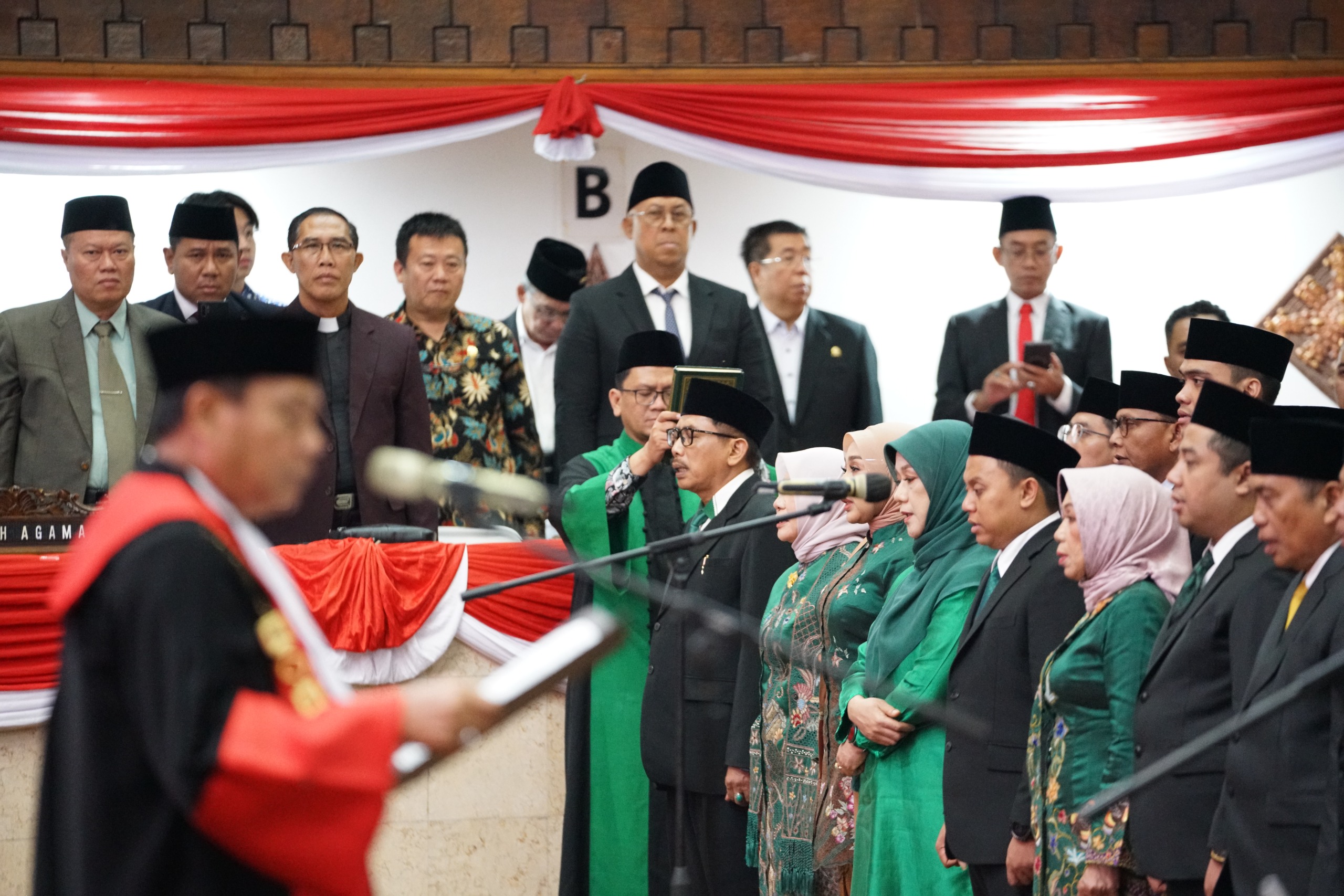 Prosesi pelantikan dipimpin langsung oleh Ketua Pengadilan Tinggi Surabaya, Kresna Menon. Ia memandu pengambilan sumpah jabatan 120 anggota DPRD Jatim yang menandai proses awal masyarakat Jatim dalam menyampaikan aspirasinya.
