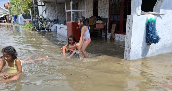 Kondisi ini mulai menimbulkan kekhawatiran di kalangan warga, terutama karena banyak anak-anak yang terlihat bermain dan mandi di tengah genangan air banjir. Aktivitas ini dianggap berisiko bagi kesehatan, mengingat air rob yang menggenangi pemukiman tercampur dengan sampah dan limbah domestik.