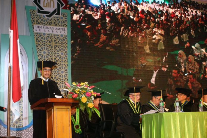 SURABAYA, liputanjatim.com – Kamis 14 September 2017, Menteri Pemuda dan Olahraga (Menpora), Imam Nahrawi menerima penganugerahan gelar Doktor Honoris Causa (HC) dari Universitas Islam Negeri Sunan Ampel (UINSA) Surabaya di bidang Kepemimpinan Pemuda Berbasis Agama.