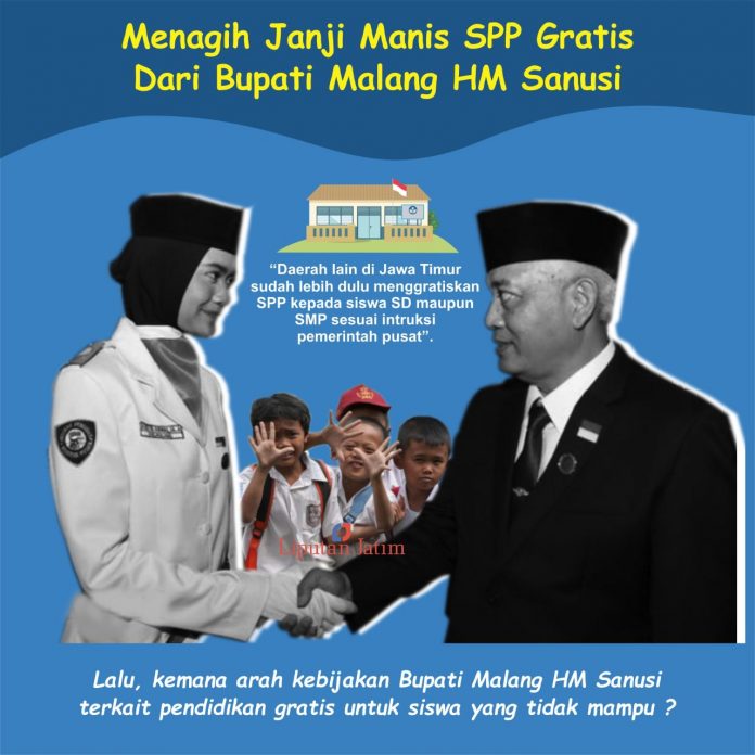 Liputanjatim.com – Janji manis Bupati Malang HM Sanusi untuk menggratiskan SPP bagi siswa Sekolah Dasar (SD) dan Sekolah Menengah Pertama (SMP) pada tahun ini yang digembar-gemborkan masih menjadi angin lalu.