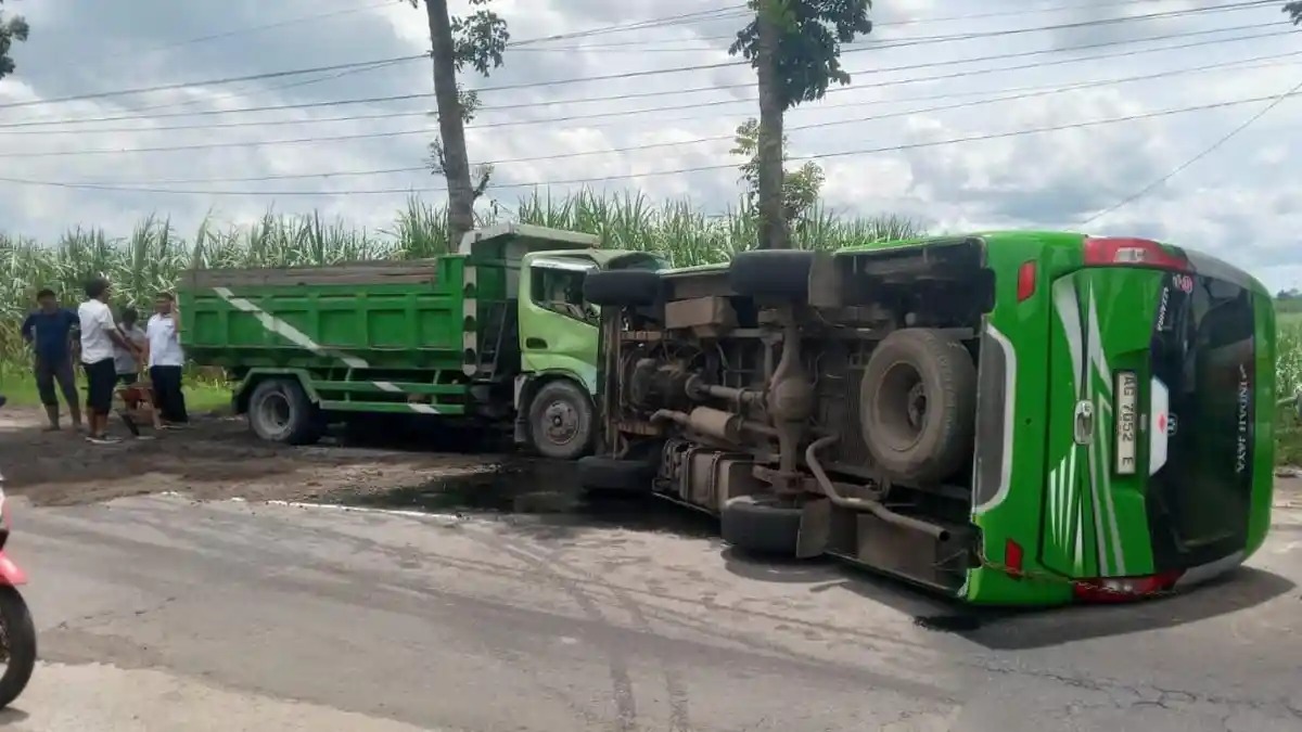 Menurut Taufik, minibus yang melaju dari arah Tulungagung menuju Blitar kehilangan kendali saat melewati lokasi kejadian. Akibatnya, kendaraan terguling dan terseret hingga menabrak dump truk yang sedang parkir di bahu jalan.