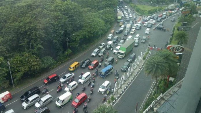 Liputanjatim.com – Hari pertama pemberlakuaan PSBB di Surabaya tampak mengalami penumpukan di ruas jalan Bundaran Waru, perbatasan Surabaya-Sidoarjo.