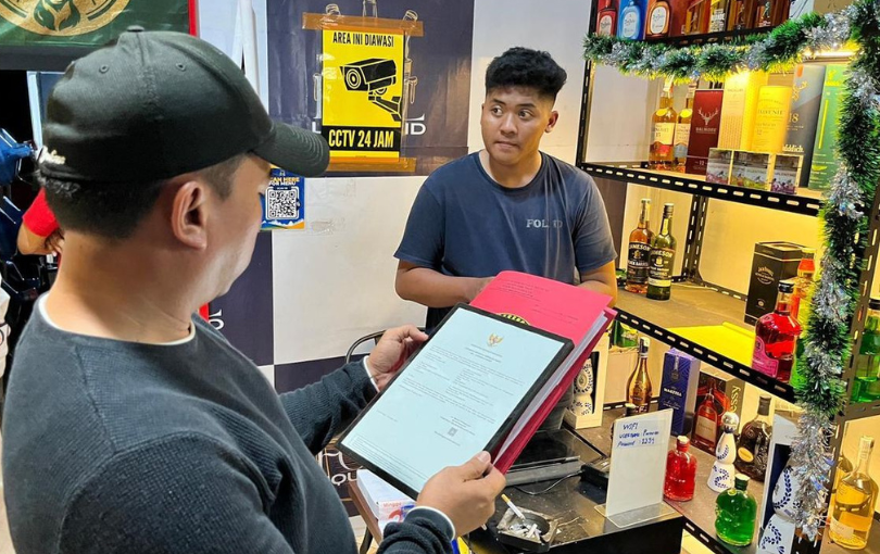 Polisi menindak pemilik kafe dengan menerapkan Pasal 106 UU No. 7 Tahun 2014. Pasal tersebut mengatur sanksi pidana bagi pelaku usaha tanpa perizinan.