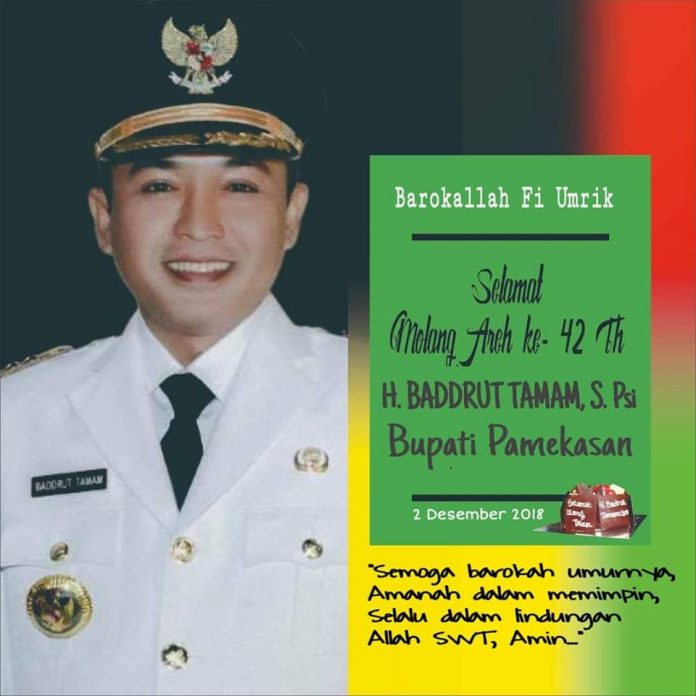 Pamekasan, Liputanjatim.com – Bupati Pamekasan mendapatkan banyak surprise di ulang tahunnya yang ke- 42. Berbagai pihak mengucapkan selamat ulang tahun kepada Bupati kelahiran 02 Desember 1976 itu.